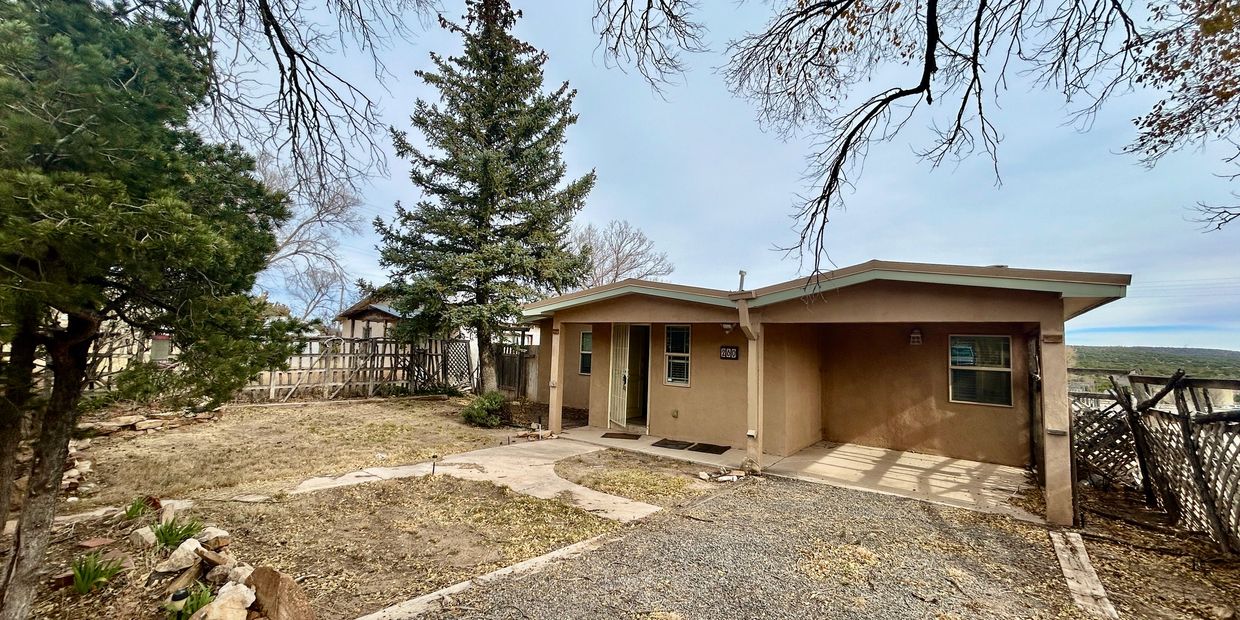 Quaint 2 Bedroom/2 Bath Stucco Home in Corona, NM. Nice open floorplan with entry coat closet, large living/kitchen area with Island, nice cabinetry, granite counters, stainless steel appliances, water softener, tiled flooring, pellet stove, utility room, and extra versatile room off the kitchen for an office/workout area or sunroom. Guest Bath has walk-in shower & master bath has large jetted tub. Fenced backyard and Shop for hobbies/storage in back too! Metal Roof, coyote fence in front with gate to driveway/carport- Perfect for rental! Recently had sale to clear out-needs a bit more clearing, but lots of potential and Easy Access!